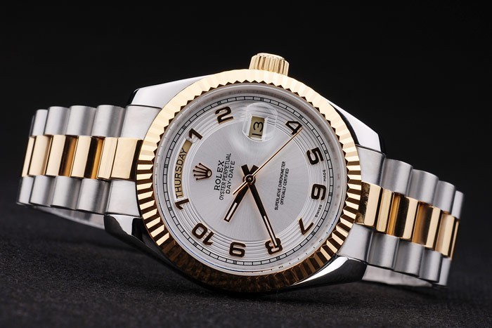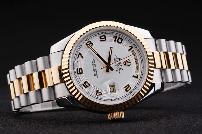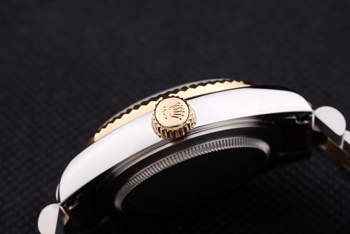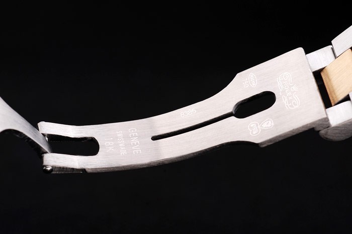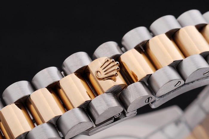 Case japonesa: acero inoxidable cepillado y amarillo cadena de eslabones de oro con el doblez sobre el corchete y Rolex corona engraving