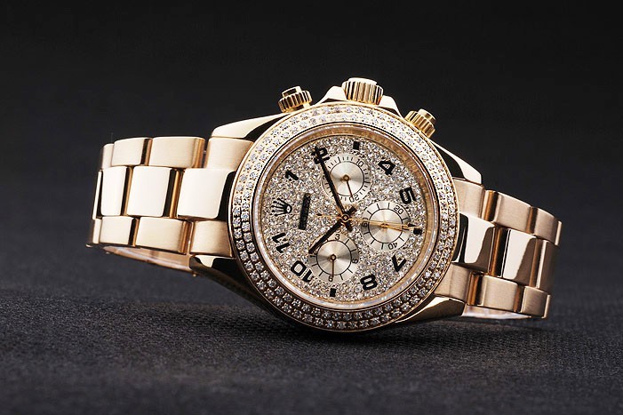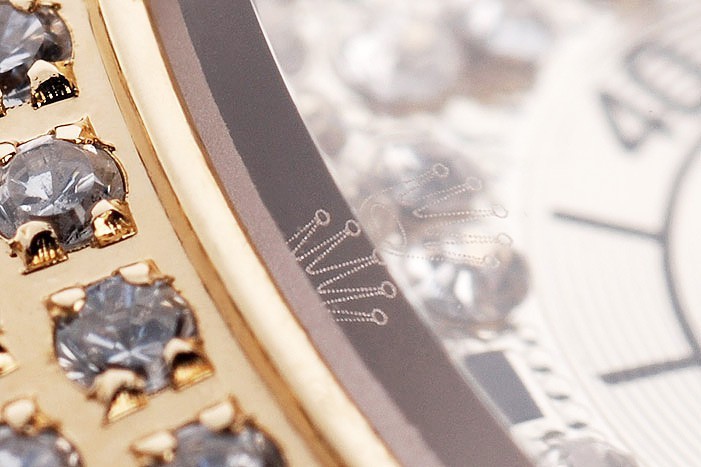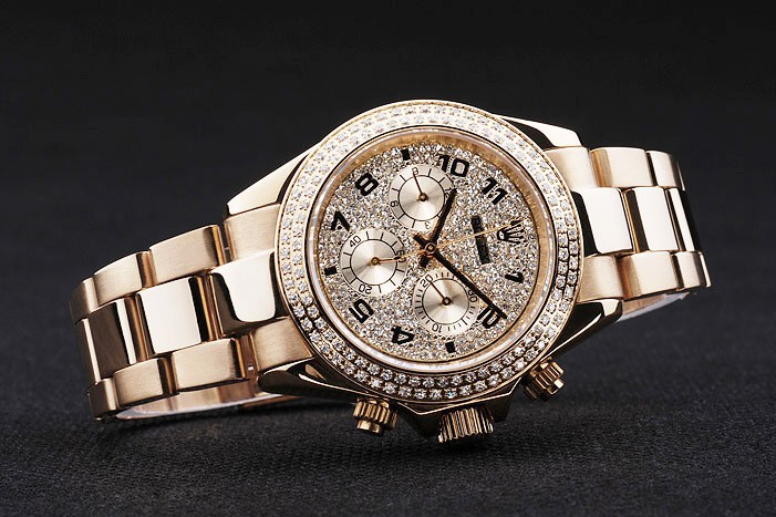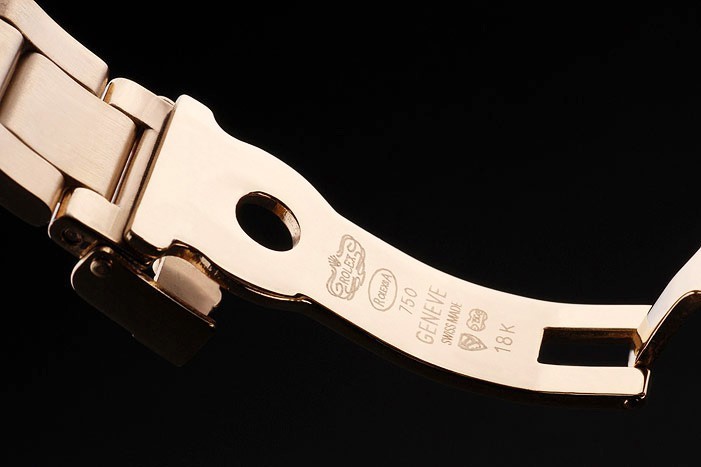 Crown: corona del oro calado tonos con el logotipo de Rolex y dos coronas adicionales a ambos lados de it
